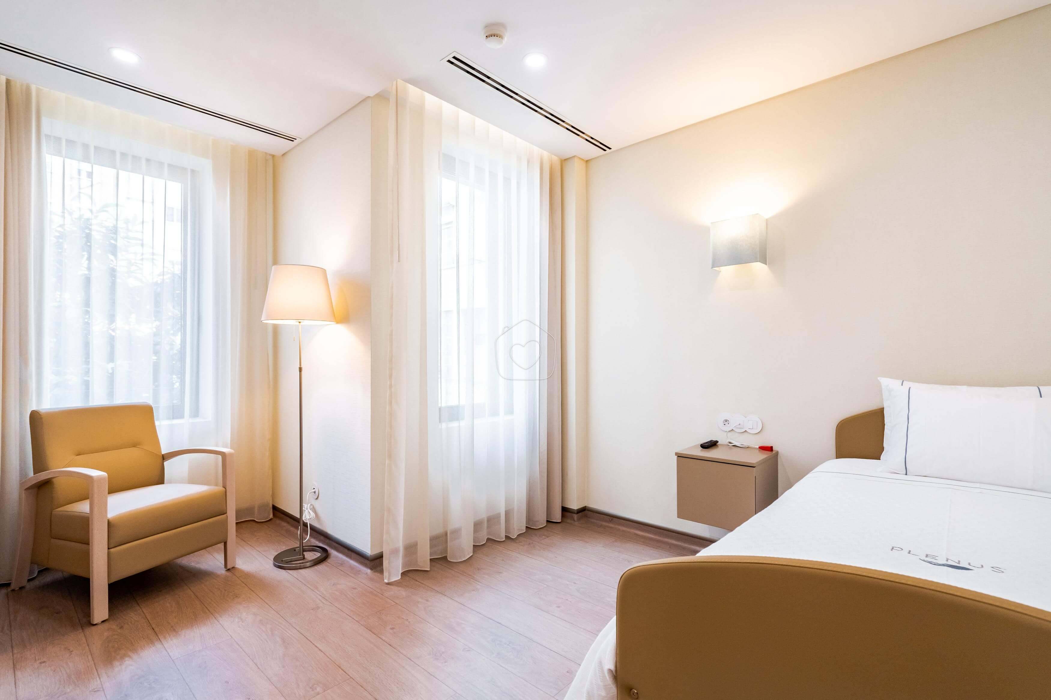 A Residência Assistida Plenus disponibiliza quartos individuais, duplos e triplos para acolher 23 pessoas idosas. Existem na residência assistida várias salas e espaços comuns e uma área de refeições com muita luz natural, característica típica de Portugal. Os quartos podem beneficiar de vista para o jardim, que é aberto a passeios e atividades lúdicas para os idosos. Em cada quarto, equipado de camas articuladas, televisão, colchões anti-escaras e aquecimento central, os idosos podem colocar as suas fotografias e bens decorativos, para que seja um local o mais personalizado possível e onde o bem-estar sénior é privilegiado. O tratamento de roupa e a alimentação e hidratação são assegurados por este lar português. Cada cama inclui um sistema de chamada, para que o idoso, em caso de dificuldade, seja auxiliado o mais prontamente possível pelas auxiliares geriátricas.