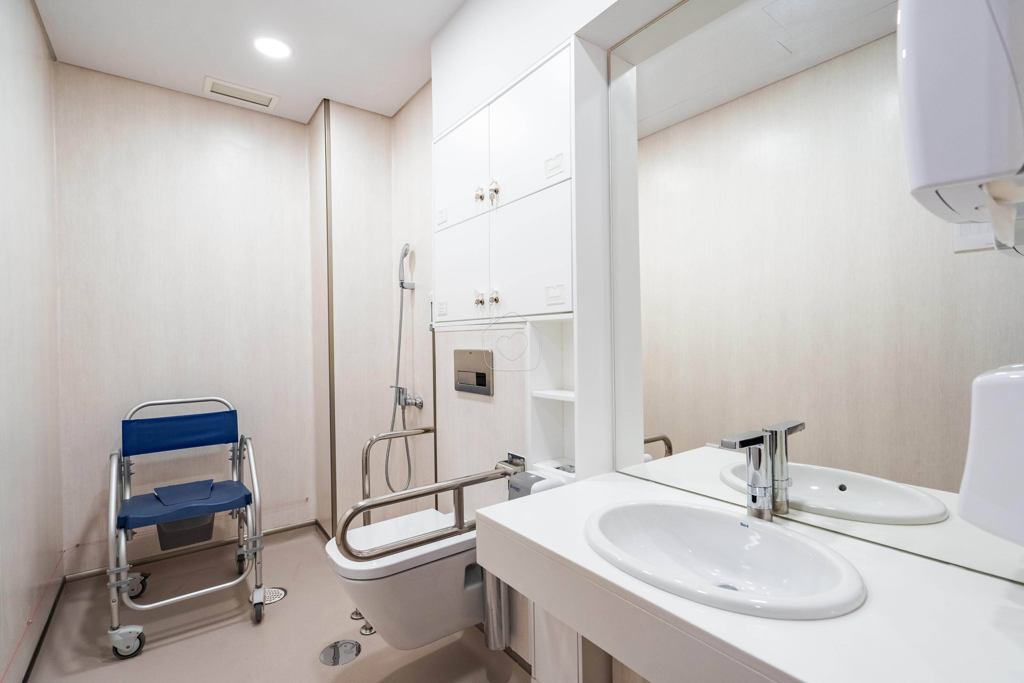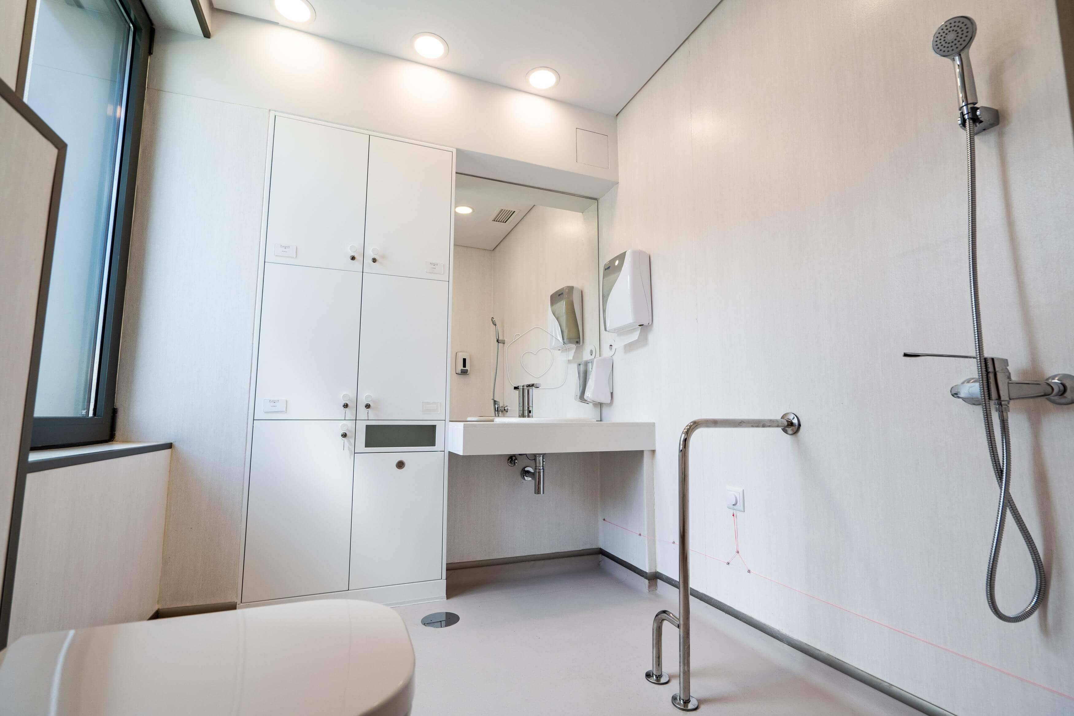 As casas de banho estão equipadas com sistemas de segurança anti-queda. Os corredores contam com ajudas técnicas como corrimãos para ajudar à locomoção dos idosos mais dependentes.